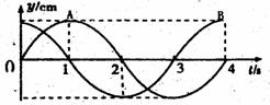 处在x1=1m和x2=2m的两质点A、B的振动图