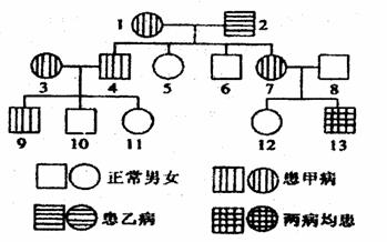 42.右图是甲病(基因用A、a表示)和乙病(基因用B、b表示)两种遗传病的系谱图。