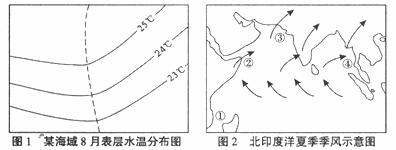 (2).图1虚线所示的洋流朝 (方向)流动。在图2所示的①、②、③、④四海区中,图1表示的海域可能出现在 海区。