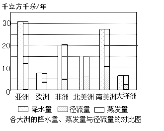25.读各大洲的降水、蒸发及径流量的对比图,回答: