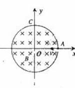 一个不计重力的带电粒子从磁场边界与 x轴的交点 A处以速度 v沿-x方向射入磁场,恰 好从磁场边界与 y轴的交点 C处沿+y方向飞出。