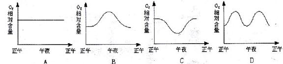 2.(2分)在温室中的绿色植物受阳光照射,发生光合作用而生长。若昼夜测定温室内氧气的相对含量,则下列图像能正确反映温室内氧气相对含量与测定时刻关系的是 ( )
