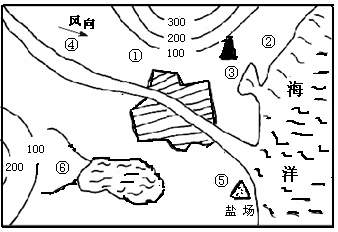 26.(9分)计划在下图①-⑥三处,分别建立化肥厂、罐头厂、自来水厂,各厂应建在何处最合理,并说明理由。
