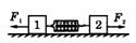放在光滑水平面上的物块1、2用轻质弹簧秤相连,如图所示.今对物块1、2分别施以相反的水平力F1 、F2.且F1大于F2,则弹簧秤的示数