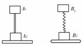 物块A1、A2、B1和B2的质量均为m,A1、A2用刚性轻杆连接,B1、B2用轻质弹簧连结,两个装置都放在水平的支托物上,处于平衡状态,如图。今突然撤去支托物,让物块下落,在除去支托物的瞬间,A1、A2受到的合力分别为F1和F2,B1、B2受到的合力分别为F3和F4,则