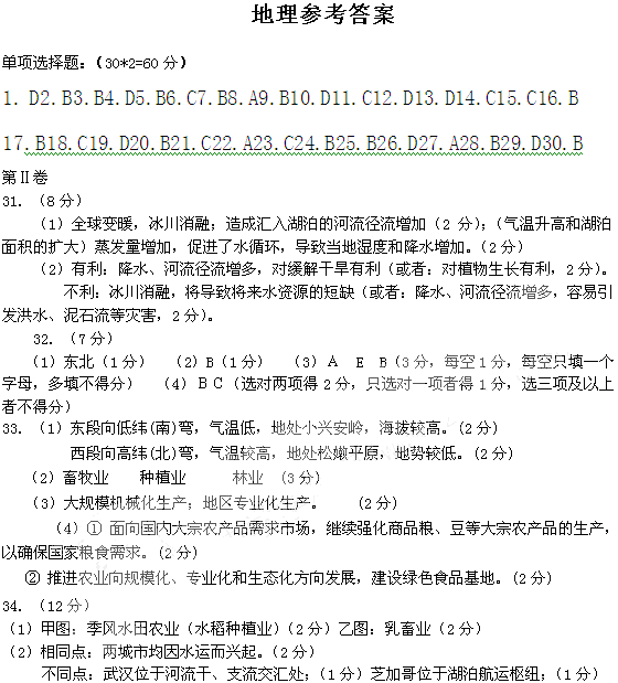 (2)比较武汉、芝加哥两城市兴起和发展的交通区位条件的异同点。(4分)