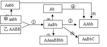 下图中,甲、乙表示水稻两个品种,A、a和B、b表示分别位于两对同源染色体上的两对等位基因,①-⑧表示培育水稻新品种的过程,则下列说法错误是