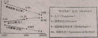 环境的承载能力是有限的。读“环境负担公式”和“我国人口与耕地变化图”,回答24-25题。