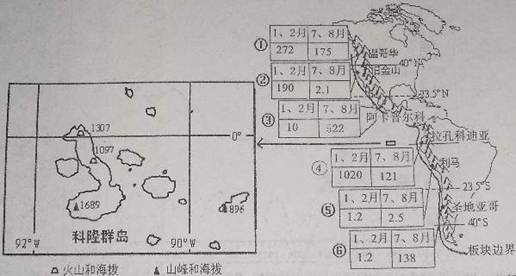 (4)科迪勒拉山系按成因分类属于___________________山脉。科隆群岛地处赤道附近,却气候凉爽、降水稀少主要原因是__________________________________。