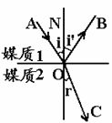 2. 通过比较入射角i和折射角r的大小判断入射介质和折射介质的折射率大小, 当i>r时,n入<n折 ,反之当i<r时,n入>n折