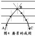 形成的正立虚像;若人在较低处,看到的蜃景是