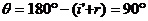 解:根据光的反射定律有入射角i跟反射角β相等i=β,根据题意折射光线与反射光线垂直,即两光线的夹角为90°,则反射角β与折射角r互余,即β+r=90°,则i+r=90°.