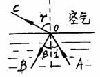 解:作出反射和折射的光路如图所示,i为玻璃中的入射角,β为反射角,γ为空气中的折射角。由反射定律可知:i=β=300,且由几何知识可得:γ+β=1800一900=900, 所以γ =900一β=600。根据光路可逆原理,光从A0入射后从OC折射出,反过来从CO入射必从OA折射,这时空气中的入射角为r,玻璃中折射角为i,故有 n=sinγ/sini=sin600/sin300=1.732 ,所以B选项正确。