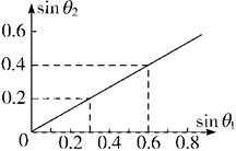 例题15.在“测定玻璃折射率”的实验中,根据测得的入射角和折射角的正弦值画出的图线如图所示.当光线是由空气射入玻璃砖时,则