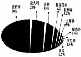 橄榄油被称为“液体黄金”。读2008-2009年世界橄榄油主产国产量比例示意图,完成3-4题。.![]()