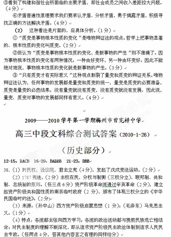 (1)若图中a点分别位于中国和美国,其可能相同的地理现象和事物是: 。(3分)