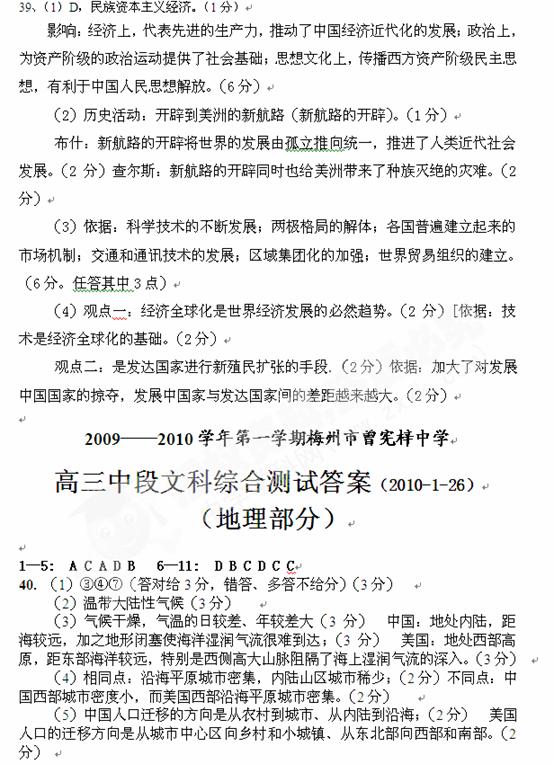 (6)图中c处分别为中美两国的重要工业区,试论述发展工业共同的有利条件及面临的主要问题。(5分)