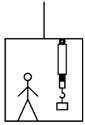 (2009届湛师附中高三级物理月考)电梯的顶部挂一个弹簧秤,秤下端挂了一个重物,电梯匀速直线运动时,弹簧秤的示数为10 N,在某时刻电梯中的人观察到弹簧秤的示数变为8 N,关于电梯的运动(如图所示),以下说法正确的是(g取10 m/s2) (C)