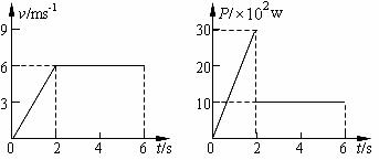 19.汽车是非常重要的交通工具.,在水平地面上的小汽车受到水平牵引力的作用而做直线运动,在0-6s内其速度与时间图象和发动机的功率与时间图象如图所示,在运动过程中汽车受到阻力的大小保持不变则汽车的质量为(取g=10m/s2) ( )