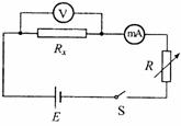 为电流表,内阻为50Ω。E为电源,R为电阻箱,Rx为待测电阻,S为开关。(08四川卷)