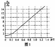( 3 )试结合图l 简要回答,磁感应强度B 在0 ~0.2T 和0.4 ~1.0T 范围内磁敏电阻阻值的变化规律有何不同?