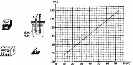 答案:(1)图略(2)记录电压表电压值、温度计数值 (3)R=100+0.395 t