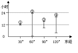 右图是北半球四地昼长的年变化图,读后回答6-9。