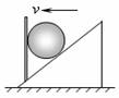 如图所示,光滑的斜劈放在水平面上,斜面上用固定的竖直板挡住一个光滑球,当整个装置沿水平面以速度v匀速运动时,以下说法中正确的是; ( )