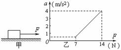 如图甲所示,物体原来静止在水平面上,用一水平力F拉物体,在F从0开始逐渐增大的过程中,物体先静止后又做变加速运动,其加速度a随外力F变化的图像如图乙所示。根据图乙中所标出的数据可计算出物体的质量为