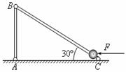 如图所示,AB、BC均为轻杆,处在同一竖直平面内,AB杆高为h。 A、B、C三处均用铰接连接,其中A、C两点在同一水平面上,BC杆与水平面夹角为30°。一个质量为m的小球穿在BC杆上,并静止在BC杆底端C处,不计一切摩擦。现在对小球施加一个水平向左的恒力F= mg,则当小球运动到BC杆的中点时,它的速度大小为