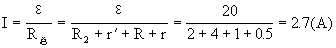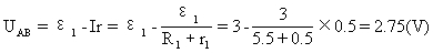 Um=ε-UR-UL-Ur=ε-I(R+RL+r)=20-1.5×(2+4+1)=9.5