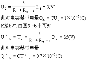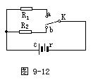 在图9-13电路中,内电阻上通过的电流与外电路的总电流相同,内电阻与外电阻是串联关系,(不能认为内电阻与外电阻并联)但R1与R2是并联的,因R1=R2,则I1=I2=I,