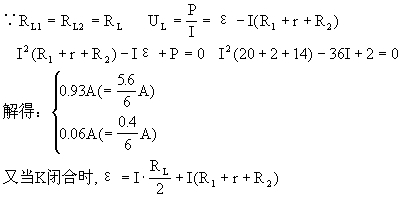 [错解分析]错解: 因为R1=R2=r,r与R1,R2并联,它们电压相同,