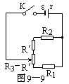 错解七:如图9-25,无论电键是否闭合,电源、变阻器回路始终是接通的,电键的位置连接错了。