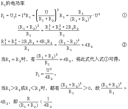 上述错解的根源在于滥用结论。事实上,确定的电源有最大的输出功率和确定的外电路上获得最大功率的条件是不同的。“外电阻等于内电阻(R=r)时,外电路上的电功率有最大值”只适用于电源确定而外电阻可选择的此形,而本题实属外电阻确定而电源可选的情况,两者意义不同,不可混为一谈。