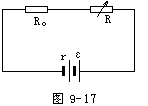 例14 如图9-17,外电路由一个可变电阻R和一个固定电阻R0串联构成,电源电动势为ε,电源内阻为r,