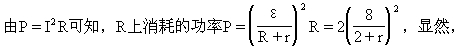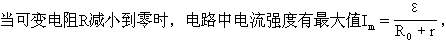 电流经过电阻R0,电流能转换成内能,R0上功率决定于电流强度大小和电阻值,即P=I2R0,所以当电流强度最大时,R0上得到最大功率。由纯电阻的闭合电路欧姆定律,有