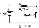 例17 如图9-28所示电路的三根导线中有一根是断的。电源、电阻器R1、R2及另外两根导线都是好的。为了查出断导线,某学生想先用万用表的红表笔连接在电源的正极a,再将黑表笔分别连接在电阻器RL的b端和R2的c端,并观察万用表指针的示数。在下列选挡中,符合操作规程的是: