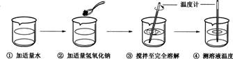 ①加适量水②加适量氢氧化钠③搅拌至完全溶解④测溶液温度