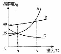 19、(2006沈阳中考)图1为A、B、C三种物质的溶解度曲线。