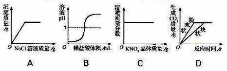 A、向一定量的硝酸银溶液中逐渐加入氯化钠溶液;