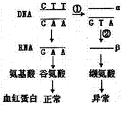右图表示人类镰刀型细胞贫血症的病因,已知谷氨酸的密