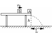 质量为M=6kg的物块A静止在离地面高h=0.8m的水平桌面的边缘,质量为m=2kg的物块B沿桌面向A运动,并以速度v0=4.0m/s与A发生正碰(碰撞时间极短)。碰后离开桌面,其落地点离出发点的水平距离为L=0.8m。碰后B反向运动。已知B与桌面间的动摩擦因数为μ=0.2,重力加速度g=10 m/s2,桌面足够长。求:
