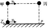 20.如图所示,甲、乙、丙三小球分别位于如图所示的竖直平面内,甲、乙在同一条直线上,甲、丙在同一条水平线上,P点在丙球正下方.某时刻,甲、乙、丙同时开始运动,甲以水平速度平抛,乙以水平速度沿水平面向右做匀速直线运动,丙做自由落体运动,则下列说法错误的是
