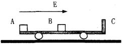 25.(19分)  长为2L的板面光滑且不导电的平板车C放在光滑水平地面上,车的右端有一块挡板,车的质量为mC=4m,绝缘物体B的质量为mB=2m,B位于车板面的中间,带电的金属块A的质量mA=m,所带电荷量为+q.A、B开始处于图示位置而静止,今在整个空间加一水平向右的匀强电场,金属块A由静止开始向右运动,与B发生碰撞时的速度为v0,碰后A以v0/4的速度反弹回来,B向右运动(设A、B均可看作质点,且所有碰撞中无电荷量的转移,若B与C相碰,则碰后C的速度等于碰前B的速度的一半).