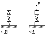 4. 四川省宜宾市2010届高三摸底测试如图a所示,水平面上质量相等的两木块A、B,用以轻弹簧相连接,这个系统处于平衡状态.现用一竖直向上的力F拉动木块A,使木块A向上做匀加速直线运动(如图b),研究从力F刚作用在木块A瞬间到木块B刚离开地面瞬间的这一过程,并选定该过程中木块A的起点位置为座标原点.则下面图中能正确表示力F和木块A的位移x之间关系的图是 ( A )