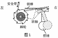 湖北省襄樊四中2010届高三摸底考试如图1所示是一种汽车安全带控制装置的示意图.当汽车处于静止或匀速直线运动时,摆锤竖直悬挂,锁棒水平,棘轮可以自由转动,安全带能被拉动.当汽车突然刹车时,摆锤由于惯性绕轴摆动,使得锁棒锁定棘轮的转动,安全带不能被拉动.若摆锤从图中实线位置摆到虚线位置,汽车的可能运动方向和运动状态是( A