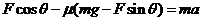 Fcosθ-mgsinθ-f2=ma………………⑤ (1分)