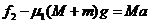 对木板进行受力分析,如图所示,根据牛顿第二定律:F-f’=Ma2,