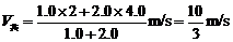 根据动量守恒定律得: mv1+Mv2=(m+M) V共